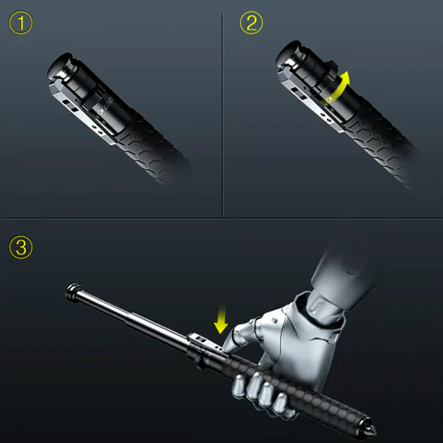 Con un solo clic, el Bastón Retráctil Self Defender™ está listo para protegerte en cualquier situación. ¡Tu seguridad al alcance de un botón!
